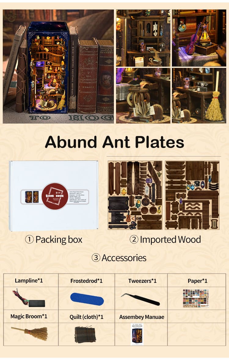 Because it adopts precision laser-cut wooden parts and transparent potion bottle accessories, the finished product presents a vivid potion laboratory effect, making your bookshelf look like it has opened a doorway to a fantasy world.