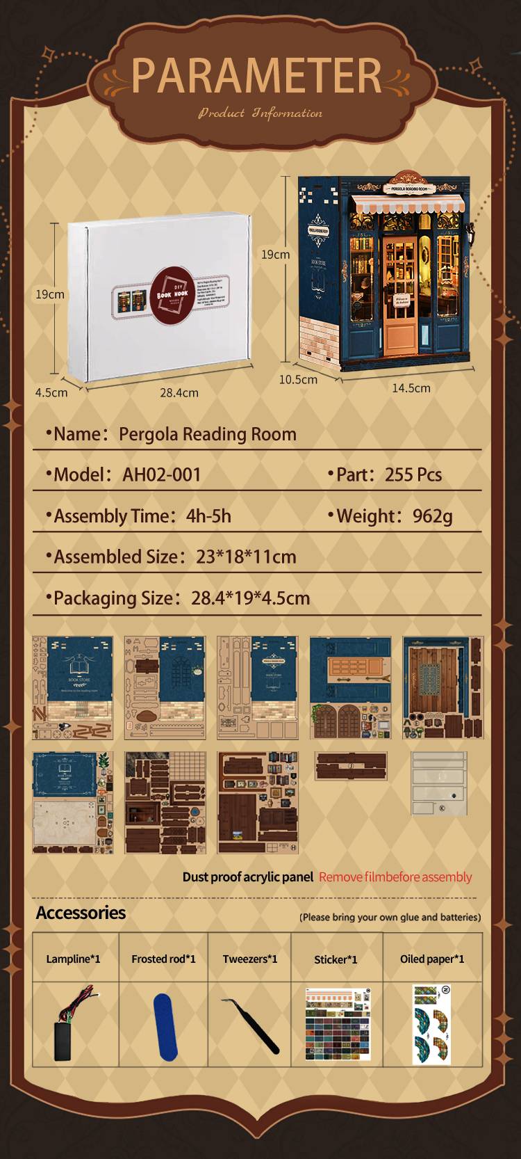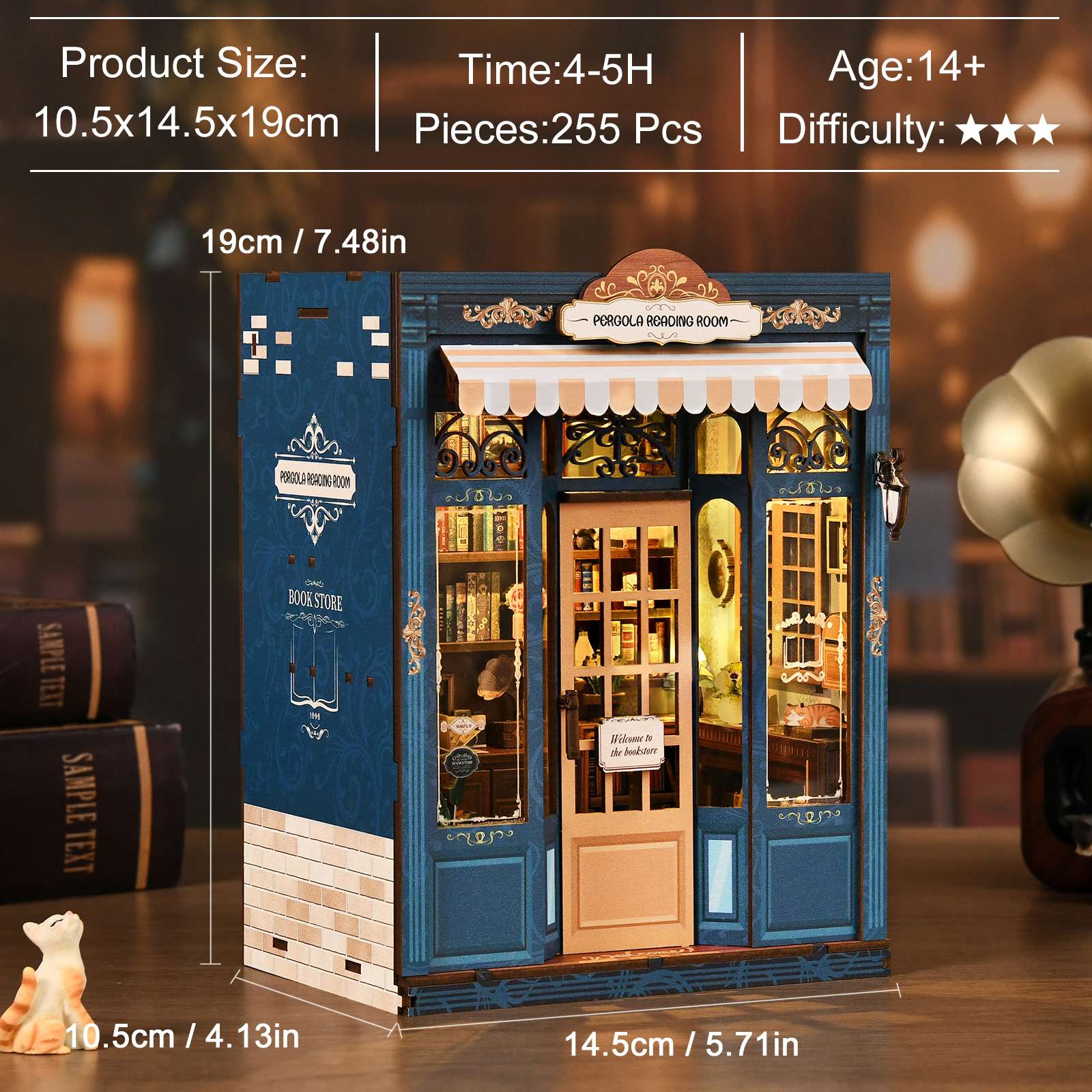 Made with premium wood, fabric, and paper components, designed to create a realistic garden reading room atmosphere.