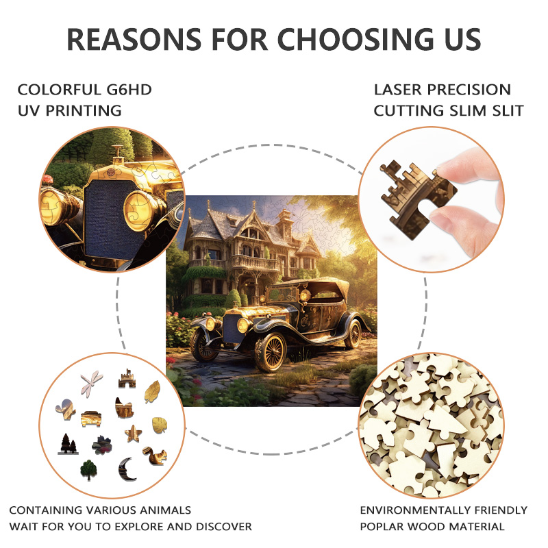 • Unique Wooden Puzzles: Each puzzle piece has a distinct shape, cut precisely with high-precision laser technology.