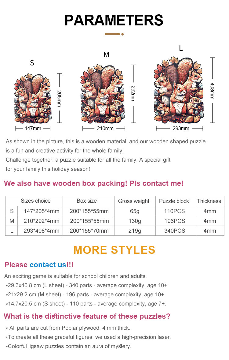 A: Yes! We offer a variety of squirrel puzzle designs. Please contact us for more options.