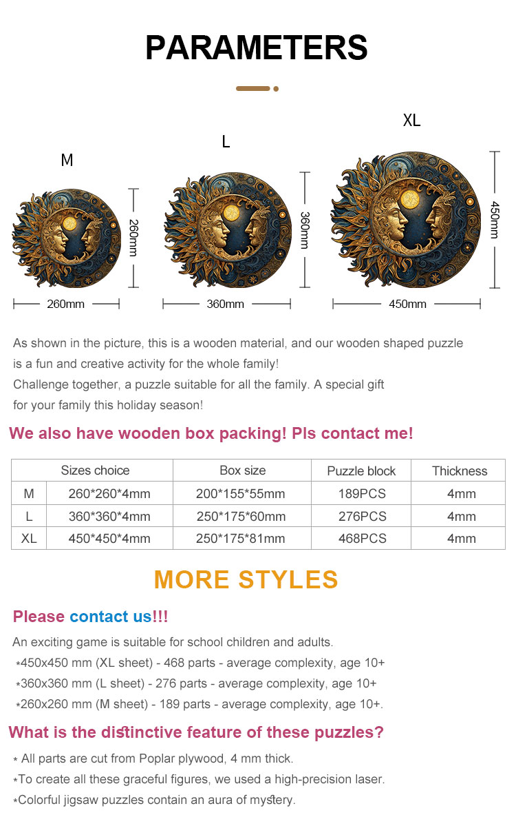 Crafted with quality, care, and sustainability in mind, the Sun and Moon Wooden Jigsaw Puzzle brings art, meditation, and eco-conscious living together—one piece at a time.